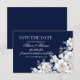 Tarjeta de salvar la fecha flor blanca sakura azul marino