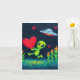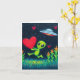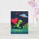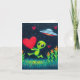 Adorable tarjeta de San Valentín de alienígena verde con corazón 4x6. Personalizable. Texto interior "Eres fuera de este mundo", "Feliz día de San Valentín"
