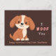 Una dulce y divertida tarjeta del Día de San Valentín con un cachorro adorable y el alegre mensaje “Te guau”. Diseñada en un estilo cálido y amigable, esta tarjeta es perfecta para niños, amantes de los perros, amigos o cualquier persona que disfrute de divertidos juegos de palabras con animales.