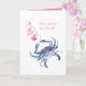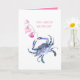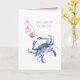 Esta tarjeta de San Valentín de acuarela con tema costero presenta una réplica de mi cangrejo azul original pintado a mano con una cadena de corazones sobre un fondo blanco crujiente. Las palabras "Estás en mi corazón" están escritas en tipografía serif en rosa y es perfecta para una nueva relación. El interior es de un rosa sólido con corazones de acuarela y está en blanco para que agregues tu saludo personalizado. Para ver más regalos y tarjetas de San Valentín de playa y náuticos para él de Victoria Grigaliunas visita www.zazzle.com/dotellabelle