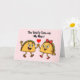 ¡Dilo con un poco de picante! Esta divertida y adorable tarjeta de San Valentín presenta dos tacos completamente enamorados, compartiendo un momento lleno de corazón. Perfecta para cualquiera que ame los juegos de palabras, los tacos o simplemente quiera dar un toque peculiar a sus saludos de San Valentín.