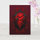 Tarjeta del día de San Valentín gótica. © Radenbrea Studios en Zazzle. Una hermosa tarjeta gótica de San Valentín roja y negra con un marco de volutas caladas y corazón negro con rosa roja que gotea sangre.