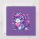 Tarjeta del día de San Valentín del unicornio más lindo. Dinosaurio Kawaii sosteniendo un corazón. Tarjeta muy linda para el día de San Valentín!