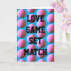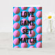 Una divertida tarjeta de San Valentín para alguien que ama el tenis. Amor, juego, set, partido. Pelotas de tenis amarillas sobre un fondo azul vibrante. El mensaje interior se puede personalizar con un nombre o mensaje de su elección.