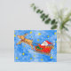 Una escena clásica de Navidad, con Santa, un reno, nieve y una noche estrellada.
