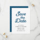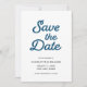 La tarjeta de Save the Date de olas azules tiene un reverso con patrón de olas azules.