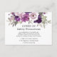 Tarjeta de seguridad para boda con flores violetas púrpura COVID-19 Tarjeta interior