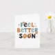 Esta tarjeta de saludo de 'ponte bien' incluye un mensaje alegre y colorido que dice "Siéntete mejor pronto". La letra de estilo lúdico y manuscrito añade un toque personal, con letras que varían en tamaño y colores como azul claro, negro, naranja y marrón. Pequeños ilustraciones de orquesta acompañan cada palabra, esparcidos por las letras de la tarjeta. Las bandas de música son un toque muy agradable, con tonos beige y manchas marrones. En general, esta tarjeta muestra calidez y positividad, perfecta para enviar vibraciones curativas a un ser querido. 🩹 🧡 Con un diseño encantador y un mensaje reconfortante, esta tarjeta de saludo "get well" le hará sonreír a todo aquel que sienta el clima. La combinación de texto colorido y ilustraciones de banda lúdica crea un ambiente alegre y amistoso que es a la vez estimulante y sincero. La mezcla de letras azules, negras, naranjas y marrones frente a un fondo blanco crea un contraste visualmente atractivo, atrayendo la atención y difundiendo buenos deseos. Ya sea para un amigo, miembro de la familia o colega, esta tarjeta es una manera reflexiva de mostrar a alguien a quien le importa y que está pensando en ellos durante un tiempo difícil. Get Well Soon! 🩹 💙