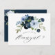 Un hermoso diseño de guirnalda floral con flores elegantes de color azul polvoriento y azul marino. El texto y los colores se pueden personalizar.