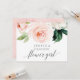 Haz la gran pregunta con esta hermosa tarjeta de ¿Serás mi dama de flores?. Este diseño presenta una encantadora flor blush con una fuente elegante. ¡Ella estará muy feliz cuando le pidas que esté a tu lado!