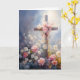 Tarjeta de simpatía con cruz floral y mensaje "con corazones pesados compartimos todo nuestro amor"