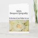 Con la más profunda simpatía por la pérdida de tu padre en la ley expresa tu solidaridad en tiempos de dolor enviando una tarjeta personalizada a tu familia y amigos. Esta tarjeta también está disponible en otras versiones, (familiares) específicas y en algunos idiomas no ingleses. Sugerencia de texto interno: Condolencias para ti y tu familia por la pérdida de tu ser querido. Nuestros pensamientos están con ustedes en este momento de dolor. Con la más profunda simpatía.