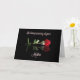 En la amorosa memoria de tu madre. Esta tarjeta de bonito tiene una sola rosa roja sobre una brillante mesa negra. En pocas palabras, elegante, una tarjeta de condolencia para expresar su solidaridad y apoyo por un momento tan difícil.