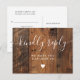 Una tarjeta de RSVP boho de granero de madera rústica con tipografía chic. El reverso incluye tus datos y una divertida solicitud de canción para invitados. Diseñada por Thisisnotme©