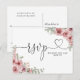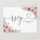 Una elegante tarjeta de respuesta con corazón floral rosa polvoriento. El reverso incluye tus datos y una divertida solicitud de canción para invitados. Diseñada por Thisisnotme