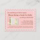 Un poema con encanto pide a los clientes que traigan un libro para el futuro bebé para empezar a dejar a la nueva madre con una biblioteca de libros para niños queridos. Sólo inserte esta tarjeta dulce dentro del sobre de la ducha para bebés. El adorable color rosa, amarillo y menta, con una bonita hilera de libros a juego, hace que el diseño sea perfecto para coordinarse con cualquier invitación para un chica a una ducha de bebé.