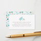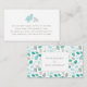 Tarjeta de solicitud de libros para mamás dulces y aves bebé con diseño de hojas coloridas. Colores neutros de género en agua, verde azulada, arena y blanco.