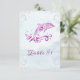 Mesas de recepción con una tarjeta de recepción Magenta Dolphin Wedding. El diseño de la tarjeta de mesa incluye un delfín de estilo metálico con un fondo de olas oceánicas mudas adornado con elegantes rollos. También hay material de boda adicional disponible con este diseño.