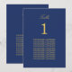 Tarjeta de tabla Navy Blue Golden Beige Guest Names, fácil de personalizar en la plantilla de personalización en línea para mostrar el número de tabla de la tabla correspondiente y los nombres de invitados de esa tabla. El diseño se copia automáticamente al otro lado de la tarjeta para ayudar a los clientes a encontrar su mesa a ambos lados de la mesa. El diseño de esta tarjeta de mesa presenta un texto elegante en un tono dorado de beige (falso dorado / dorado) sobre un fondo azul marino clásico. Con un diseño simple y minimalista, la tarjeta de mesa incorpora espacio alrededor de los elementos de texto para permitir la elección de métodos de visualización como el ahorcamiento o el enmarcado de la tarjeta.