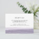 Elegantes y modernas, estas tarjetas de recepción de boda presentan un borde inferior de líneas geométricas entrecruzadas en blanco con una capa inferior de lavanda púrpura. Agregue los detalles de su recepción, incluyendo hora, lugar y dirección. Diseñada para coincidir con nuestra suite de boda Lineation en Amatista.