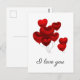Hermosa postal con globos rojos flotantes en forma de corazón. La forma perfecta de decir Te Amo.