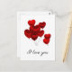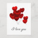 Hermosa postal con globos rojos flotantes en forma de corazón. La forma perfecta de decir Te Quiero.
