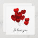 Hermosa tarjeta de te quiero con globos rojos flotantes. En blanco por dentro para tu propio mensaje. El diseño de globos flotantes también está en la parte posterior de la tarjeta. ¡Divino!