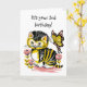 Tarjeta de tercer cumpleaños de gatito y mariposa