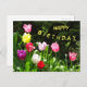 Tarjeta de texto de cumpleaños feliz con tulipanes