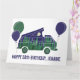Crea una tarjeta de cumpleaños personalizada. Esta tarjeta de felicitación doblada está lista para ser personalizada con tu propio mensaje en la parte frontal y en el interior y cuenta con una ilustración de un fanático de las furgonetas camper con una tienda de campaña emergente en el techo y está ilustrada para parecer una noche de luna en el bosque con una luna llena en un cielo índigo lleno de estrellas que brilla sobre un bosquecillo de árboles de hoja perenne.