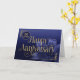 Esta es una tarjeta del 30 aniversario de Empleados que presenta el texto 'Feliz Aniversario' escrito en un elegante tipo de letra con corrientes de cambios. El texto y los detalles del diseño tienen un atractivo efecto de Relieve metalizado dorado. El fondo está formado por un degradado de color azul oscuro a medio, con una flor de lirio que atrapa los ojos, en tonos azules, en la esquina inferior derecha. El número de años está en la parte superior izquierda. NOTA: El efecto de Relieve metalizado de oro se simula digitalmente en la obra de arte, no se utilizará ningún Relieve metalizado de oro real en la fabricación de este producto. Diseño de NATALIE KINNEAR