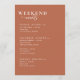 Bienvenido a sus huéspedes con estilo con esta tarjeta de la cronología del fin de semana boda boho. Esta nota de bolso de bienvenida boda le permite crear fácilmente un itinerario boda personalizado para su fin de semana especial, asegurándose de que sus huéspedes tengan toda la información que necesitan. El diseño minimalista complementa cualquier estilo boda moderno, lo que lo convierte en la adición perfecta a su bolso de bienvenida boda cuando sus huéspedes se registran en sus habitaciones.