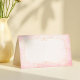 Agrega elegancia a la configuración de tu fiesta de despedida de soltera con esta tarjeta de tienda en blanco, que presenta un suave fondo de acuarela rosado y florituras doradas románticas. Esta tarjeta plegable versátil es perfecta para etiquetar comida, bebidas, obsequios o asientos de invitados en una fiesta de té, vintage o celebración con tema de jardín.