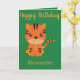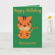 Una bonita tarjeta de saludo para un niño pequeño, este diseño presenta un tigre lindo. "Feliz cumpleaños" está escrito con tinta naranja cursiva con su nombre en la parte inferior. En el interior hay un mensaje encantador. ¡Elige la tuya! Clipart: Diseño de Prettygrafik (https://www.etsy.com/shop/Prettygrafikdesign)