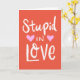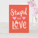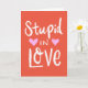 Ideal para el Día de San Valentín, aniversarios, o simplemente porque te enamoraste y estás listo para admitirlo, esta tarjeta de felicitación dice "tonto en amor" en la parte frontal con áreas de texto de mensaje editable y nombre en el interior. Un cálido rojo coral hace que la letra blanca a mano y los corazones rosados ilustrados resalten, pero se pueden cambiar a cualquier color que desees con la herramienta de edición de diseño.