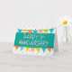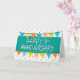 Esta es una colorida tarjeta de aniversario de empleado de 9 años, ambientada en un blanco con un pequeño fondo de patrón de triángulos. En el centro de la tarjeta está el texto 'FELIZ 9 ANIVERSARIO' puesto sobre un fondo de jade verde. Al hacer coincidir los colores con el patrón de triángulos, hay un agrupamiento encima y debajo del texto. Diseño de Natalie Kinnear