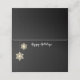 Esta tarjeta plegada se muestra con un color de fondo negro con una estampación gráfica de copos de nieve de cristal de oro festivo. Personalizar este artículo o compra tal cual.