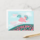 Ilustración de unicornio de dibujos animados rosa y menta con colores pastel. Saltando sobre la pradera y jugando con nubes, el pequeño unicornio está lleno de energía positiva. Este diseño adorable puede hacer que las niñas se sientan felices y alegres. Texto personalizado en el interior.