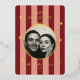 Envía cálidos deseos de vacaciones con un estilo atemporal con esta elegante tarjeta de foto a rayas rojas. Con rayas retro audaces, detalles de estrellas doradas y un encantador espacio para foto enmarcado con cinta, es la forma perfecta de compartir tu amor y alegría con amigos y familiares. Ya sea para celebrar tus primeras vacaciones juntos o para enviar saludos anuales, esta tarjeta añade un encanto acogedor y vintage a la temporada.