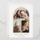 Tarjeta de vacaciones moderna con lámina de foto de arco y escritura decorativa "y" entre 2 palabras y un patrón de vegetación invernal en la parte posterior. Para una personalización más avanzada de este diseño, haga clic en el BOTÓN DE HERRAMIENTA DE DISEÑO AZUL.