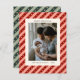 Captura la magia de la temporada con esta alegre tarjeta de vacaciones con foto a rayas rojas. Con un patrón clásico de rayas de bastón de caramelo y detalles de estrellas brillantes, es la forma perfecta de compartir la alegría familiar y los deseos cálidos con seres queridos. Ideal para nuevos padres, familias o parejas que celebran su primera Navidad juntos: un recuerdo atemporal que difunde alegría navideña.