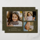 Presentamos nuestra tarjeta de vacaciones de foto con lámina de collage Elegant Modern Joy, una forma moderna y elegante de capturar el espíritu navideño con un toque de sofisticación. Esta tarjeta presenta un fondo verde profundo que establece un tono rico y elegante y tiene tipografía única en lámina dorada llamativa, lo que la convierte en una opción elegante para enviar buenos deseos. La palabra "JOY" se muestra elegantemente en tipografía de lámina dorada moderna y única, lo que agrega un toque de glamour y festividad al diseño. 3 de tus fotos se muestran en un diseño de collage moderno, lo que da como resultado una tarjeta de vacaciones llamativa y elegante que transmite tus mejores deseos. La parte trasera de la tarjeta de Navidad presenta un diseño elegante coordinado, y puedes agregar texto y fotos adicionales utilizando el botón Editar con herramienta de diseño al personalizar la tarjeta. Celebra la temporada navideña con estilo y sofisticación enviando nuestra tarjeta de vacaciones de foto con lámina de collage Elegant Modern Joy. Ya sea que estés compartiendo la alegría y el amor de tu familia, conmemorando momentos especiales o simplemente enviando buenos deseos navideños, esta tarjeta es la opción perfecta para hacer que tu temporada navideña sea verdaderamente elegante y moderna. ¡Pide la tuya hoy y deja que la alegría de las fiestas br