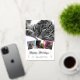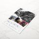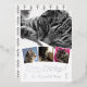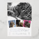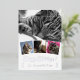 Una elegante tarjeta de vacaciones vertical con lámina de plata que presenta un collage de fotos de su gato en la parte frontal. Un simple patrón en blanco y negro de un abeto en la parte posterior.