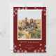 Nieve Roja Brillante Tarjeta de Foto de Felices Fiestas. Celebre las fiestas con esta elegante tarjeta roja que presenta una foto de familia enmarcada con delicados copos de nieve en todas las esquinas. El diseño está realzado con hermosa caligrafía, lo que añade un toque clásico a sus saludos de temporada. Perfecta para compartir recuerdos queridos con familiares y amigos, el mensaje en la parte posterior trae calidez y alegría a sus fiestas. Personalice con sus detalles.