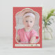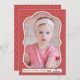 Una tarjeta de vacaciones roja sobre fondo rojo con una ventana de foto en forma de corchete. (<a href="https://www.freepik.com/free-vector/vintage-christmas-invitation-template_753398.htm">Diseñado por Freepik</a>). (<a href='https://www.freepik.com/free-photo/little-girl-in-pink-dress-sits-among-large-pink-paper-flowers_2631507.htm'>Diseñado por Freepic.diller</a>). <br/><br/>La tarjeta es fácil de personalizar con su texto, fuente y color de fuente.<br/><br/>¿No es exactamente lo que está buscando? Todos nuestros productos pueden ser diseñados a medida para satisfacer sus necesidades sin cargo adicional.<br/><br/>Simplemente contáctenos en askcottonlamb@gmail.com.<br/><br/>Productos coordinados disponibles: ¡Solo pregúntenos!