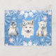 Adorables animales árticos: el zorro blanco, el pingüino y el oso polar con copos de nieve azules "Deseándote una Navidad blanca como estos animales árticos". Tarjeta postal de Navidad linda.
