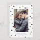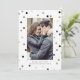 Esta tarjeta de vacaciones de Año Nuevo muestra varios tonos de puntos de confeti de oro gris y falso purpurina rodeando tu foto con el saludo personalizado debajo. La parte posterior es de un color gris claro y coordinado.