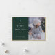 Un árbol tipográfico con un fondo verde profundo y un borde dorado falso acentúa tu foto en esta tarjeta de vacaciones moderna.