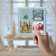 Los suaves colores del diseño de los Navidades azules Spruce tienen sus árboles icónicos acentuando su galería de fotos. Los bordes están salpicados de nieve, mientras que la parte trasera tiene una vista anticuada de más árboles. Esta es la tarjeta perfecta para enviar fotos de tu familia en un entorno mágico. ¡Bendiciones!