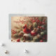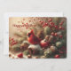 Comparte el calor de la temporada con esta encantadora tarjeta de vacaciones que presenta un brillante cardenal rojo entre piñas escarchadas, bayas invernales y suaves ramas de abeto. La escena combina la acogedora rusticidad del bosque con un toque de magia invernal, creando una sensación que es a la vez pacífica y edificante. Los colores brillantes y los detalles suaves evocan nostalgia, comodidad y la alegría tranquila de la naturaleza en invierno.